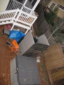 This picture was taken from the top of our steps overlooking the underside of our deck. Wonder where that window will be hung...and will it have a window screen?
